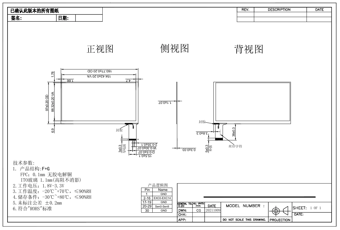 97,00 × 160,77 × 1,10 mm (Περίγραμμα αισθητήρα, Ανοχή: ±0,20 mm)